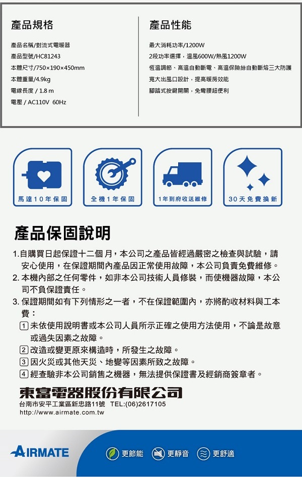 【AIRMATE 艾美特】智能偵測斷電 對流式電暖器 HC81243 討論,推薦,開箱,CP值,熱賣,團購,便宜,優惠,介紹,排行,精選,特價,周年慶,體驗,限時